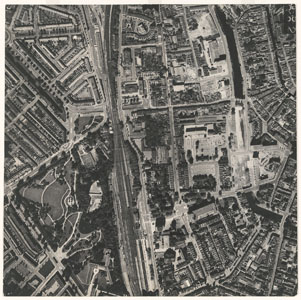 Luchtfoto. Detail van het Eiland van Dordrecht