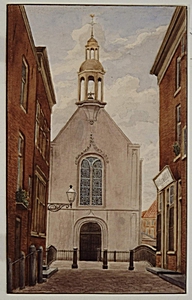 De Waalse kerk, aan de andere zijde van de Visbrug, …