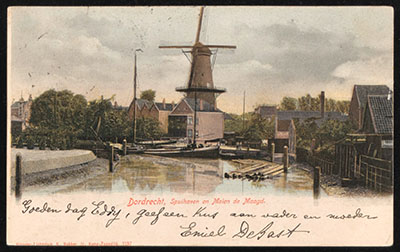 Spuihaven gezien vanaf de Johan de Wittbrug met molen De …