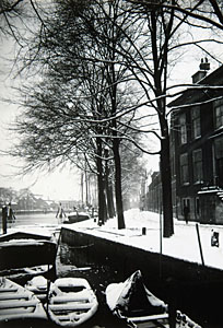 Gezicht op de Binnen Kalkhaven in de winter, links in de …