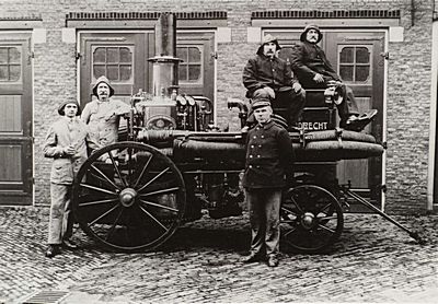 Brandweerlieden van de Vrijwillige Brandweer bij de …
