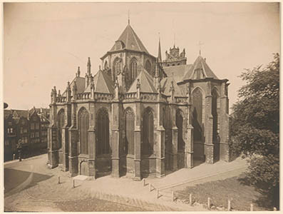 Het Grote Kerksplein met de oostzijde van de Grote Kerk, …