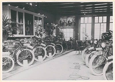 Showroom vol motoren van Garagebedrijf Jac. van den Berg …