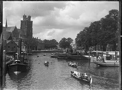 De Grote Kerk gezien vanaf de Bomkade over de Bomhaven. …