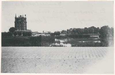 De watertoren nabij de Oranjelaan, gezien over een …
