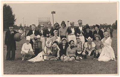 Gekostumeerde leden van korfbalvereniging De Regenboog op …
