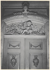 Interieur met stuc- of houtsnijwerk boven een deur in het …