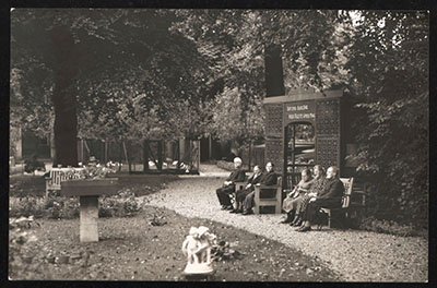 Bewoners in de tuin van Huize Johanna, een …
