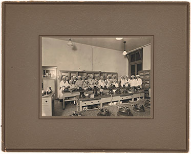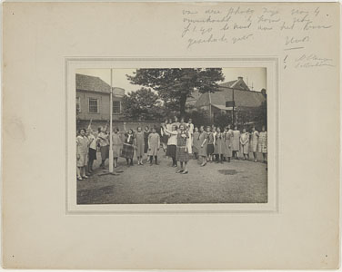 Groepsportret van leerlingen en docenten in een …