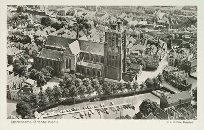 Luchtfoto van de Grote Kerk en omgeving.