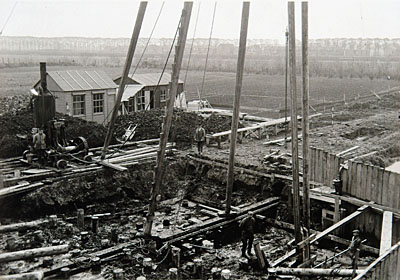 Bouwput met heimachine tijdens de verbouwing van het …