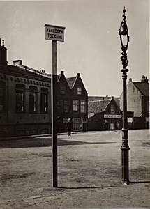 Verbodsbord (en lantaarn) op het terrein van de Nieuwkerk …
