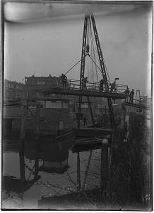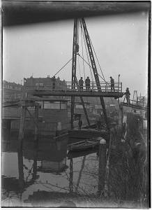 Verbouwing van de Vriesebrug over de Spuihaven. Bovenin …