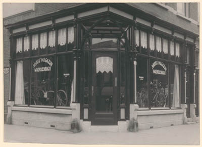 Etalage van Rijwielhandel Wantij; magazijn van …