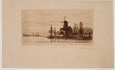 Gezicht op ingang Kalkhaven met korenmolen De Eikenboom, …