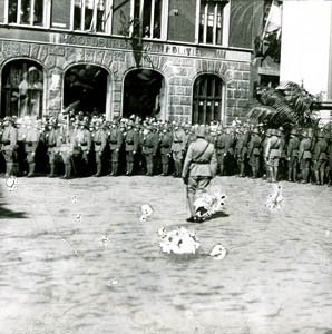 Militairen op het Stadhuisplein voor het hoofdbureau van …