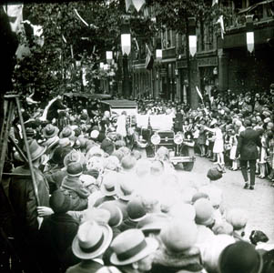 Koningin Wilhelmina op de Sluisweg tijdens de rijtour bij …