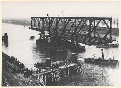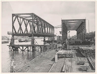 De bouw van twee brugdelen van de Moerdijk verkeersbrug …
