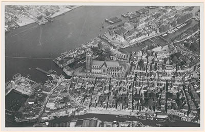 Luchtfoto van het gebied rondom de Grote Kerk. Grote …