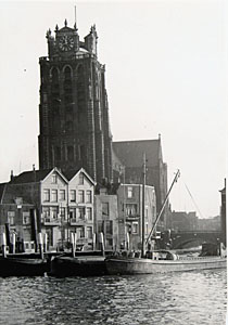 Gezicht op de Leuvehaven met de Grote Kerk en de …