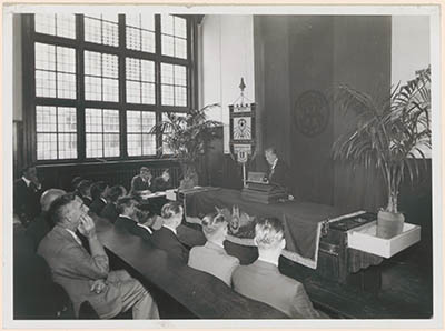 Lezing in het scheikundelokaal van de MTS aan de …