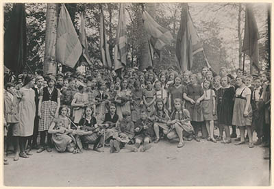Een groep zingende door mandolines begeleide AJC'ers …