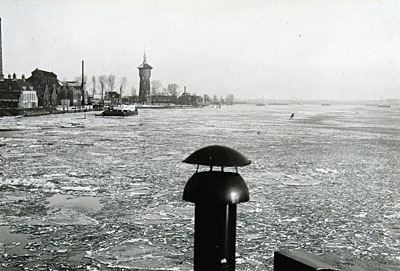 Vertrek van logiesschepen met keukenschip erachter vanaf …