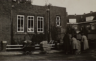 Kinderwagens in de file voor het consultatiebureau voor …