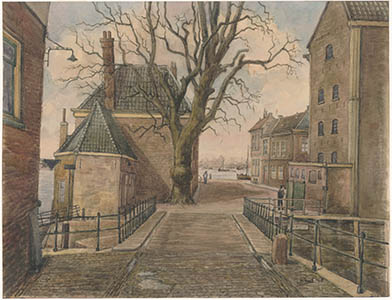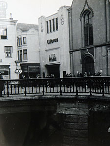 De Visbrug en de Voorstraat. Geheel rechts de Waalse …