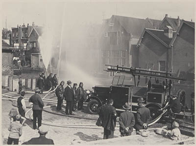 Oefening met water uit de Spuihaven op het binnenterrein …