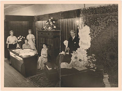Interieur van het winkelpand van de textielhandel …