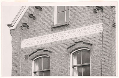 Gevelsteen met tekst over de Sint Elisabethsvloed. Zat …