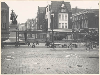 Huizen aan de noordkant van het Nieuwkerksplein, gezien …
