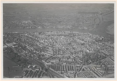 Luchtfoto van Dordrecht in noordwestelijke richting.