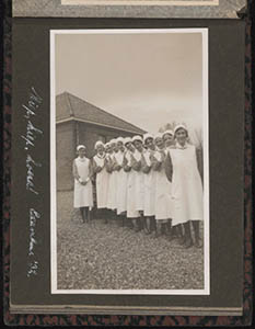 Verpleegsters van het Gemeenteziekenhuis doen examen.