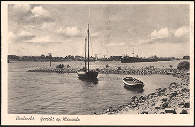Gezicht op de Beneden Merwede vanaf Papendrecht met links …