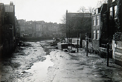 De bijna droogstaande Voorstraatshaven vanaf de …