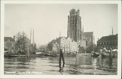 De Grote Kerk en de Korte Geldersekade (links) gezien …