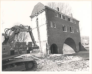 De sloop van huizen (met doorrijpoort) aan het …