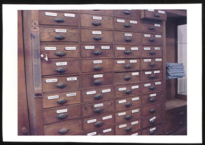 Ladekast afkomstig uit de herenkapperszaak op het station.