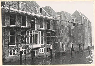 Panden aan de Wolwevershaven. De vrouwen staan op de trap …
