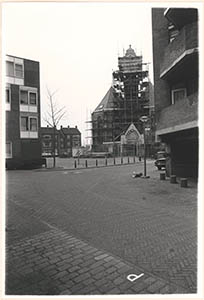 De in de steigers staande Nieuwkerk op het …
