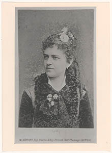 Borststuk van voren, het hoofd naar links, met bloemen in …
