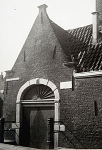 Op de hoek Korte Nieuwstraat/Vest is een poort die …