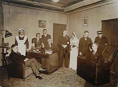 Scène uit het toneelstuk 'Willy's trouwdag' opgevoerd …