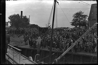 Groep kinderen en hun begeleiders op de Handelskade voor …