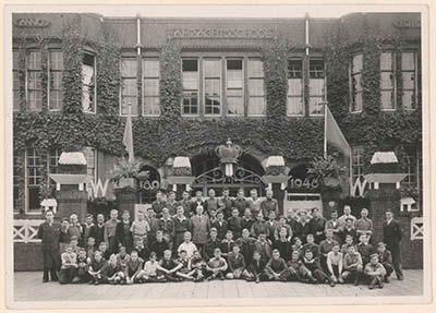Groepsportret van scholieren en enkele leerkrachten voor …