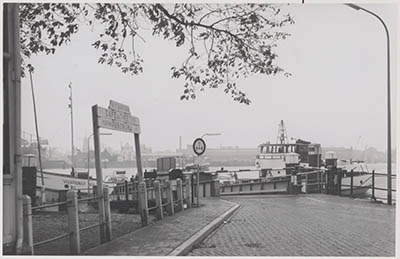 De veersteiger aan de Veerdam in Papendrecht met de pont …