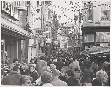 Drukte tijdens een marktdag op het Scheffersplein. De …