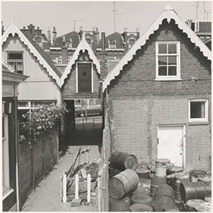 Tekening door Jan Hensema van de achterzijde van woningen …